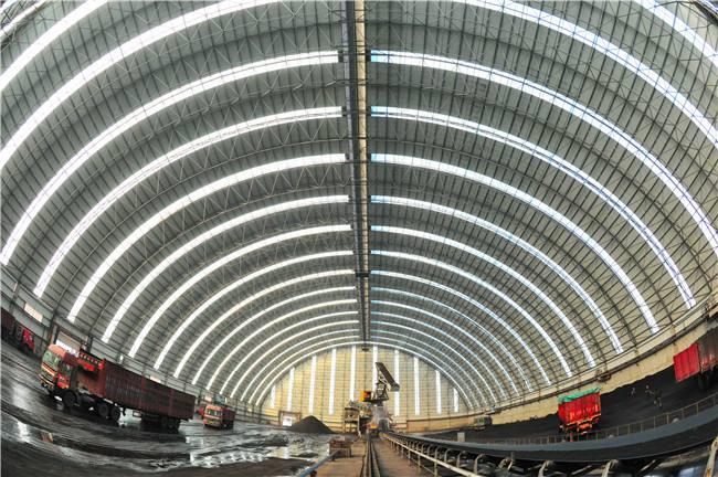 堆场料场封闭式主体结构为新型的钢太仓网架结构,维修结构为钢结构太仓不锈钢板和纤维增强塑料灯具,其外形以太仓网架式和平板为主,连接柱太仓施工自由,设置喷雾自动喷水系统,从而可以实现棚内所有物料的覆盖,减少物料在运输过程中的损耗,起到防尘的作用,减少工厂关闭后的二氧化硫排放量,50mg/m3颗粒排放量小于10mg/m3,非常适合低能耗。低闭库自动感应反应对库存轮胎进行清洁,确保轮胎不受道路污染;封闭的储存区可从源头控制粉尘污染,控制无序排放。